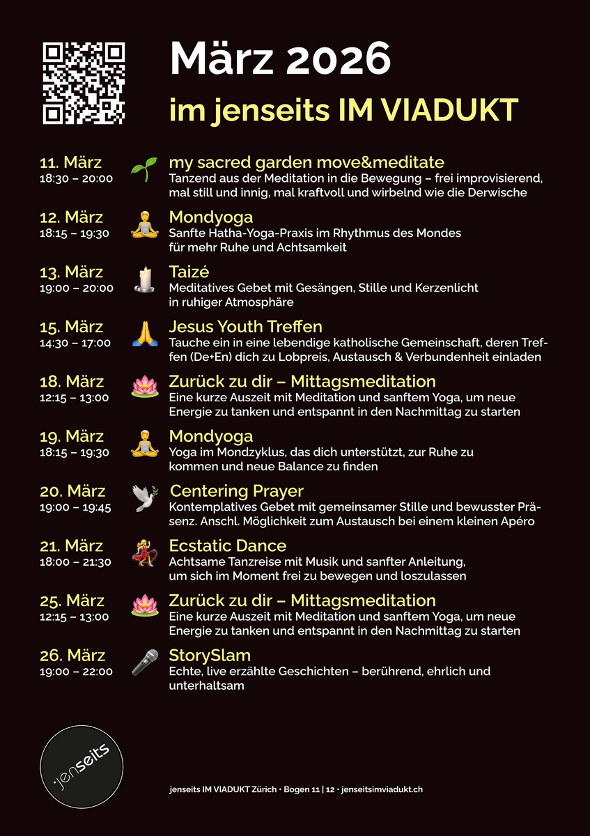 Das jenseits – ein Ort im Herzen von Zürich mit inspirierenden Angeboten in den Bereichen Kultur, Spiritualität und Nachhaltigkeit für junge Erwachsene.
